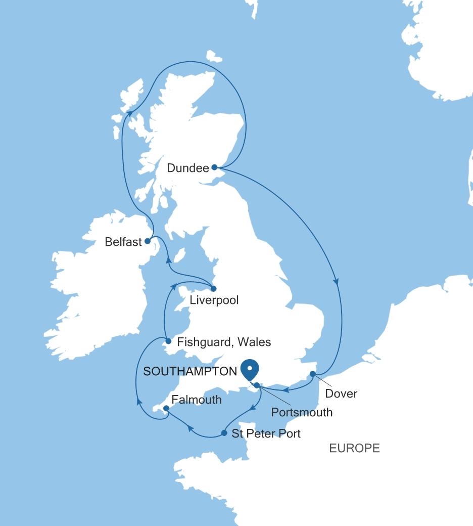 Islands of influence, cultural capitals, and stunning scenery — step aboard Silver Spirit for an in-depth exploration of the British Isles. Loop from England’s South Coast to discover maritime heritage that once ruled the waves, cross to French ramparts, and explore proud nations — from Wales’ dramatic coastline to Northern Ireland’s layered history. Overnight in Dundee, gateway to Scotland’s emerald landscapes, before returning beside Dover’s famous cliffs.