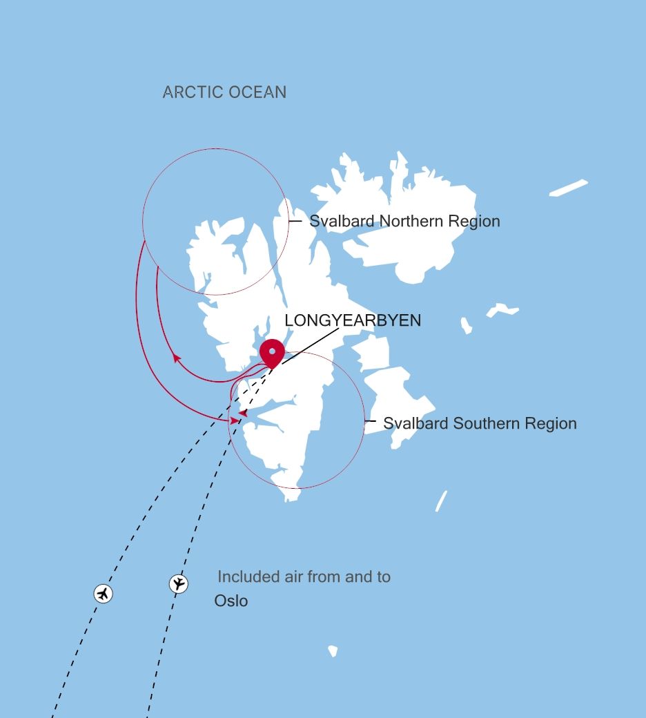 Charter flights: Cruises with embarkation/debarkation in Longyearbyen include flights to and from Oslo.